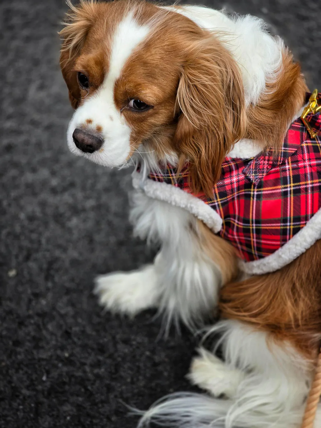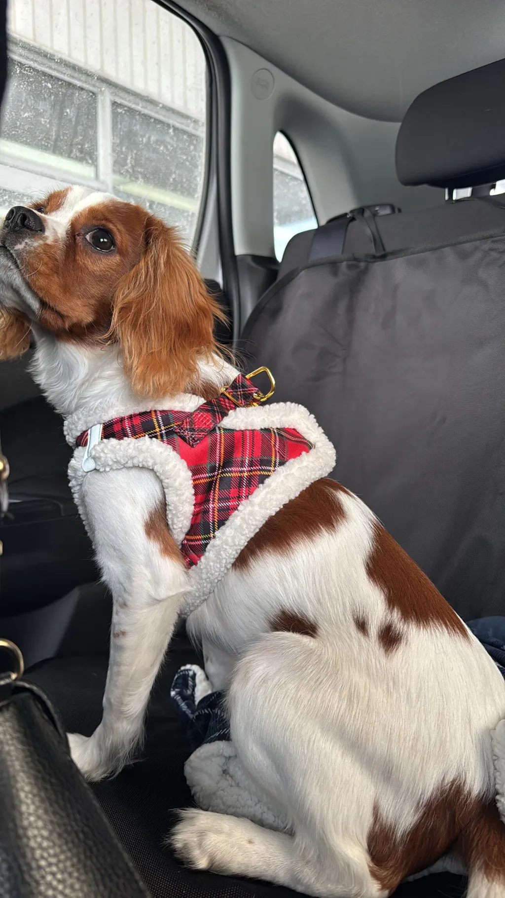 🎅 Winter Wonderland Step-In Dog Harness – Red Tartan with White Sherpa Trim